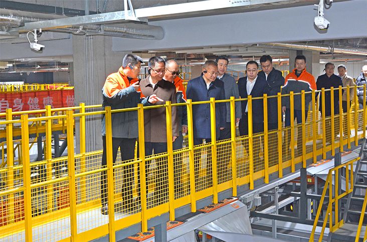 图为赵冲久一行调研申通快递北方总部基地。