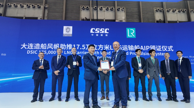 2025中国海事会展第二日,中船大连造船在展会现场重磅发布三款面向航运脱碳的创新船型设计,涵盖全球首艘乙醇燃料苏伊士型穿梭油船、5 万立方米液化二氧化碳运输船及风帆助推 17.5 万立方米液化天然气(LNG)运输船。其中,风帆助推 17.5 万立方米 LNG 运输船获必维船级社(BV)原则性认可(AiP)证书,这一成果既是对大连造船自主创新技术的权威背书,也是 BV 以专业认证赋能 LNG 航运低碳升级的关键实践。