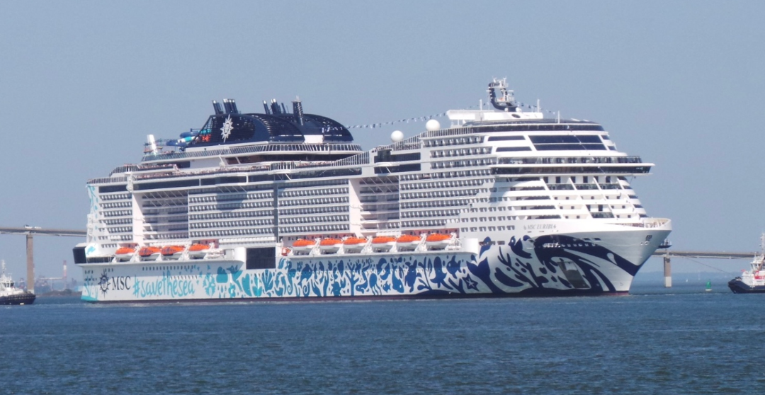 停靠在迪拜拉希德港的地中海邮轮“MSC Euribia”号(2023年建成,184,000总吨);