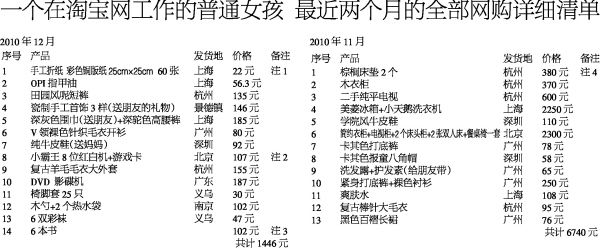 昨天,我又让小崔姑娘列了一下这两个月在“现实”中的开销情况。小崔姑娘想了半天,列表如下: