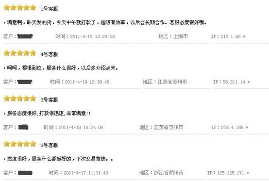 回购网(www.ihuigo.com)客户交易评价,部分截图: