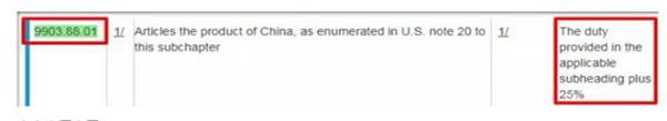 继续在网页中查询“9903.88.01”,这里就明确提及,这一部分的中国产品在适用税率基础上再加25%。
