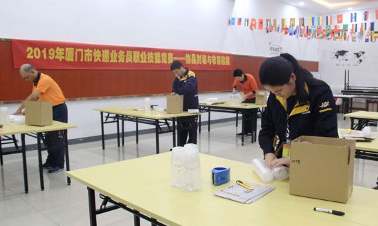 近日,第二十五届职工技术比赛暨2019年厦门市快递业务员职业技能竞赛圆满落幕。竞赛由厦门市服务业工会联合会、市快递行业协会等联合举办,市邮政企业、11家快递企业共60名选手参加了竞赛。
