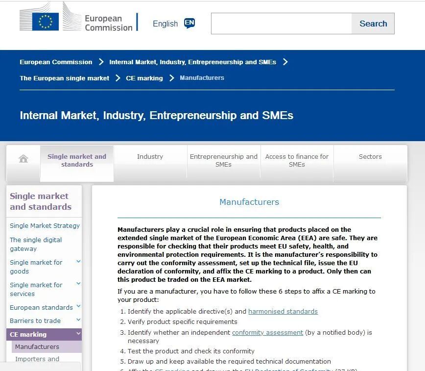 欧盟网站,可查询每类产品的准入要求,符合性声明要求、协调标准等。