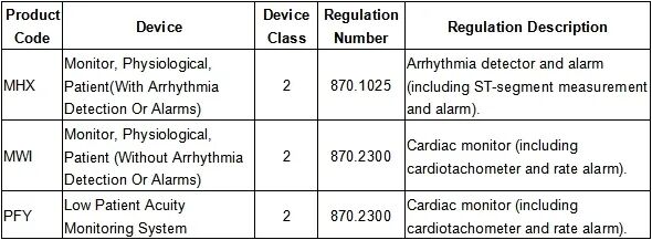 美国主要的病员监护仪产品类别如下表