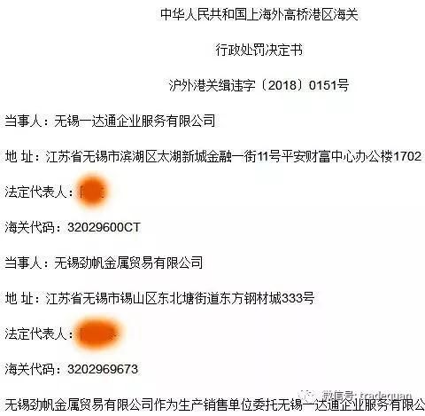 原来!无锡劲帆金属贸易有限公司作为生产销售单位委托了无锡一达通企业服务有限公司作为收发货人,于2018年6月25日向海关申报出口至美国一般贸易项下货物一批。