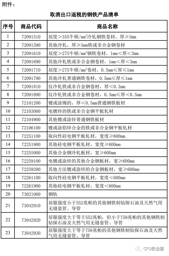 2021-7-30 最新消息,财政部、税务总局联合发布《关于取消钢铁产品出口退税的公告》(以下简称“公告”)。公告称,自2021年8月1日起,取消部分钢铁产品出口退税,具体执行时间,以出口货物报关单上注明的出口日期界定。