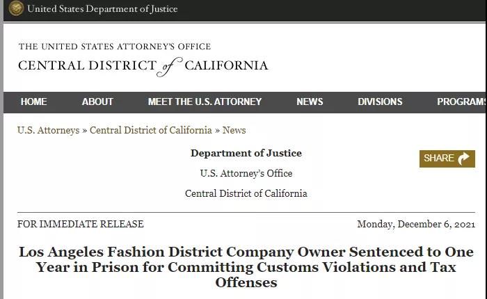 12月6日联邦法官判处洛杉矶市中心时尚区一家服装批发公司老板Sang Bum“Ed”Noh12个月零1天的刑期,罪名是承认八项控罪,包括洗钱和欺骗海关。