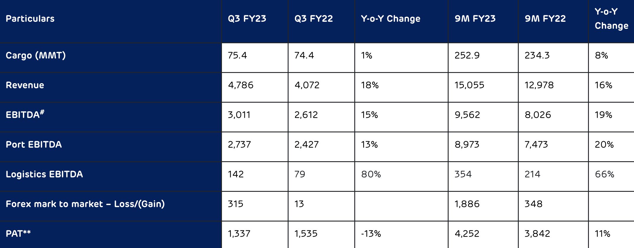 印度最大的港口运营商阿达尼港口和经济特区(APSEZ)发布了截至2022年12月31日的第三季度和九个月业绩。